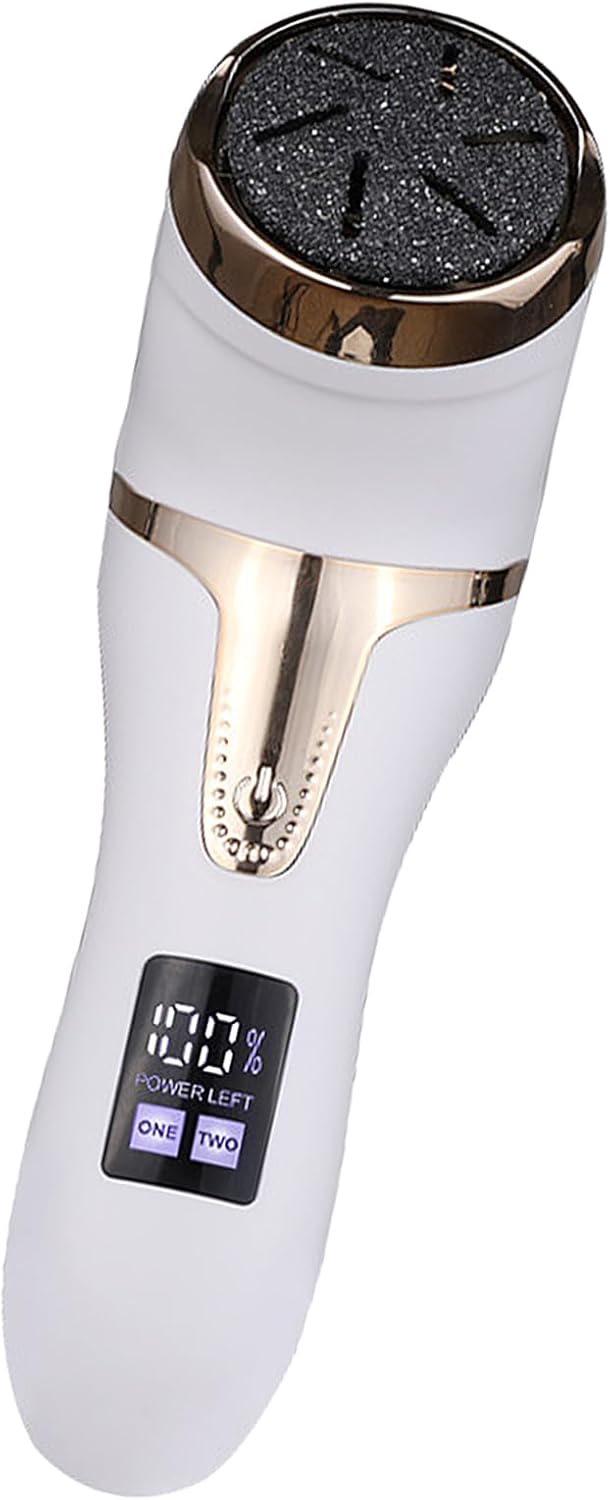 Electric Foot Callus Remover, LCD Display Electric Foot Grinder Multifunctional with 3 Grinding Heads for Pedicure Shop (White)