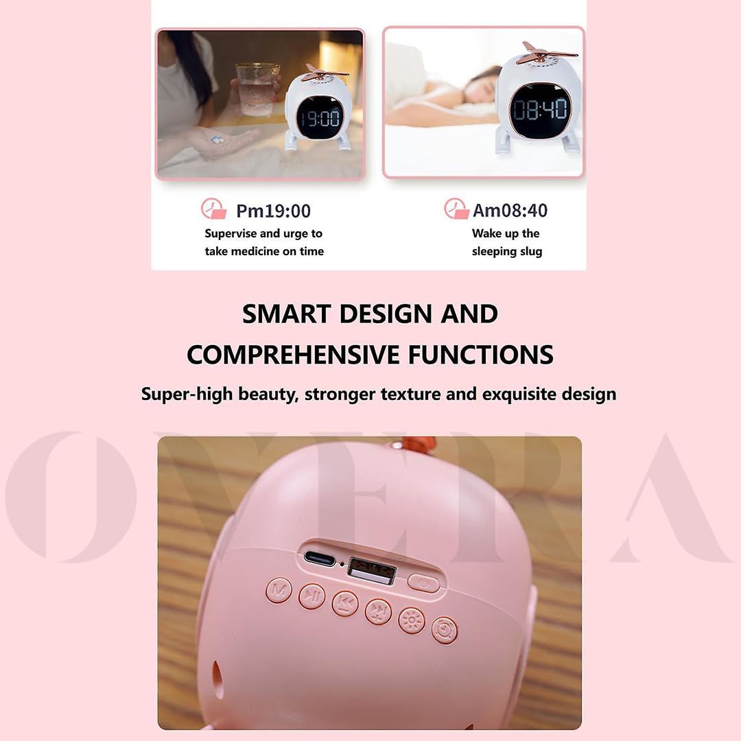Product name: Aromatherapy Bluetooth alarm speaker Material: ABS Battery capacity: 1500mAh Speaker: 45mm 4 Ohm 5W Input: DC 5V-1A Interface: TYPE-C Wireless transmission distance: 10m Frequency response range: 100HZ-20KHZ Anti-slip silicone pad to increase the friction of the desktop, can be used as a mobile phone stand Alarm clock design, clock synchronization Top rotating scent amplification, sound and scent intertwined 360 degree spherical sealed cabinet, sound stereo surround Size: 102.8x97.6x131.5 mm Product Category: Bluetooth Speakers/Mini Speaker Features: A portable speaker that's small to medium like a can, it's lightweight, fits easily in a handbag, and you can take it to the and just with soft music. The perfect gift, this speaker arrives in a lovely, shiny, retail ready box. It makes a really good first. speakers have been certified. making it completely and usable for outdoor activities in any weather conditions. Excellent sound for sound and volume, deep bass is solid, and are clear, and the overall sound is of great quality. That's a lot of power, not enough to a medium sized room or, and it with decent sound. to set up The speaker setup is as easy as pairing a Bluetooth device. Exquisite appearance, a beautiful gift for your lover family, suitable for Christmas, Easter, Valentine's Day. Bluetooth indicator USB indicator Radio indicator Product list : 1 x alarm clock 1 x charging cable 1 x manual 1 x empty fragrance bottle